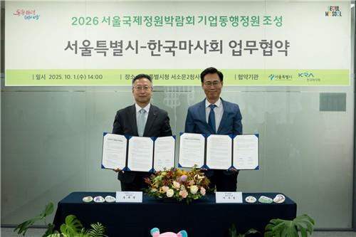 한국마사회(회장 정기환)는 10월 1일(수) 서울시청 서소문2청사에서 서울특별시와 `2026 서울국제정원박람회 1호 동행정원 조성을 위한 업무협약`을 체결했다.