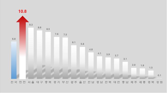 최근 인천시는 청년 인구 순유입이 지속되며 `청년이 머무는 도시`로 주목받고 있다. 2025년 8월 시도별 출생아 수 전년 동기 대비 증가율